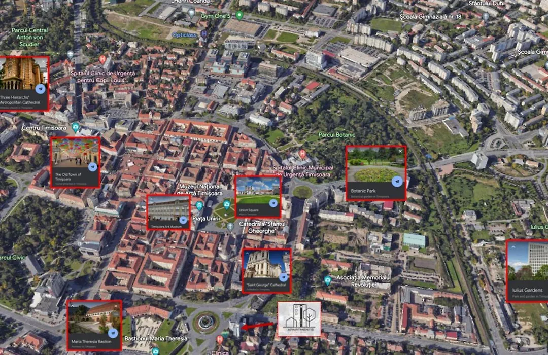 Μουσείο Μπάνατ και ο Βοτανικός Κήπος της Τιμισοάρα απέχουν 950 και 550 μέτρα αντίστοιχα, και ανήκουν στα κορυφαία αξιοθέατα της περιοχής. Η Piaţa Victoriei απέχει σχεδόν 1 χλμ. από το διαμέρισμα.